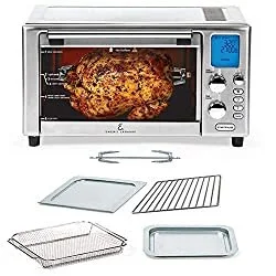 This impressive 9-in-1 air fryer can literally replace your countertop convection oven! It features 5 all-over heating elements which perfectly resemble a commercial-quality oven.
